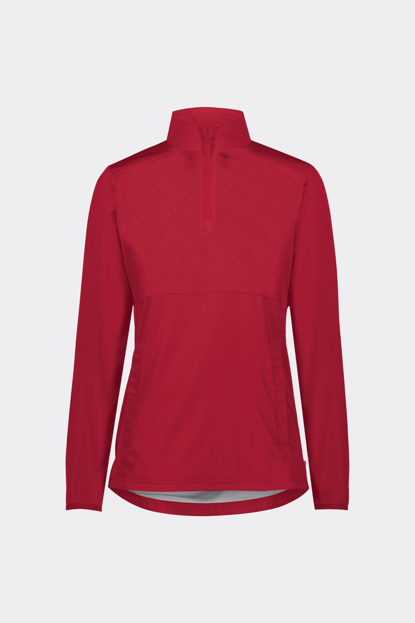 - Quarter zip pullover style with zipper garage